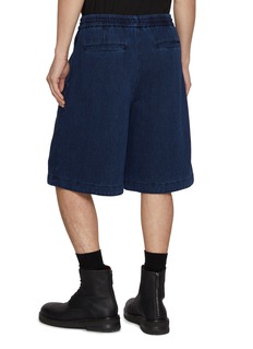 Juun.J refines utilitarian ease through texture and proportion. Cut from richly woven dark-wash denim, these shorts feature a relaxed silhouette tempered by a drawstring waist, pairing effortlessly with oversized tees or structured outerwear for directional summer layering.