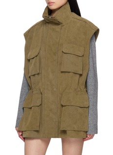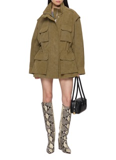 Juun.J reinterprets classic utility through a contemporary lens in this utilitarian-inspired safari coat. Defined by detachable sleeves and an adjustable waist, the oversized silhouette balances structure with versatility—ideal for layering or standalone statement dressing.
