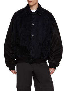 JUUN.J - Faux Leather Sleeves Denim Jacket