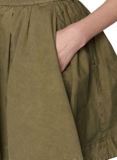 Youthful yet polished, this Juun.J mini skirt channels utilitarian-inspired tones through a softly structured silhouette. The overdyed finish enhances its lived-in appeal, while the flared hem creates a subtle sense of movement—perfect for balancing oversized tops or sweatshirts.