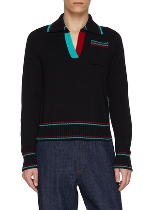 JW ANDERSON Contrast Trimming Cotton Cashmere Shrunken Polo Knit Sweater