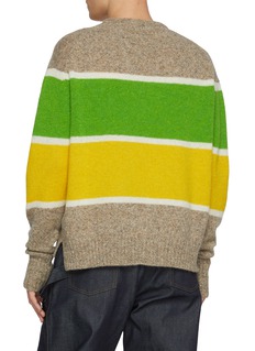 Bold colour bands energise this JW Anderson lambswool sweater, where earthy melange meets vivid green and yellow in an unexpectedly uplifting palette. Its soft hand-feel and relaxed drape make it ideal for off-duty layering or adding a playful twist to classic denim.