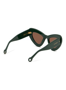 A sculptural silhouette defines these butterfly sunglasses, where JW Anderson channels playful futurism through a deep forest-green acetate frame and warm brown lenses. A bold finishing touch to summer tailoring or off-duty monochrome looks, they bring artful attitude to everyday sunwear.