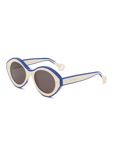 These Jwa07 sunglasses capture JW Anderson’s sculptural whimsy through a rounded “bumper” frame, layered in creamy white with electric-blue contouring. The bold profile and soft-tinted lenses deliver a retro-futurist finish—perfect for energising clean tailoring or elevating casual denim looks.