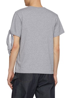 A subtle twist on a staple, this JW Anderson tee redefines minimalism through an asymmetric knotted sleeve that adds movement and sculptural ease. Crafted in soft grey melange cotton, it balances everyday comfort with an artful detail that elevates simple styling.