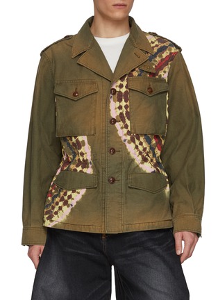 Explore the bold realm of fashion with the KHOKI camouflage detail jacket. This piece seamlessly combines rugged utility with striking style, featuring a classic military green base complemented by vibrant camouflage panels. Crafted from robust material, it promises durability and protection, making it perfect for outdoor adventures or stylish urban outings. The jacket includes practical elements such as multiple flap pockets for functionality and button closures for a secure fit. The blend of traditional and contemporary design elements makes this jacket a standout piece, ideal for those who appreciate a statement garment with practical appeal.