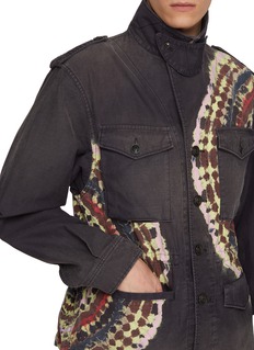 Step into a world of edgy sophistication with the KHOKI charcoal jacket, accented with bold camouflage details. This jacket blends the classic utility look with modern elements, featuring a deep charcoal colour that gives it a versatile and timeless appeal. The vibrant camouflage inserts add a contemporary twist, making the jacket a perfect statement piece for fashion-forward individuals. Crafted with attention to detail, it includes multiple flap pockets for practicality and button closures for a secure and stylish fit. Ideal