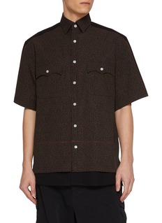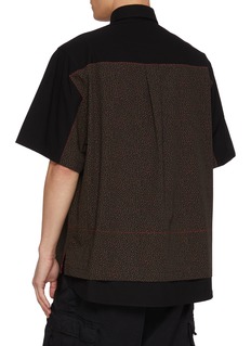 Kolor reworks the classic short-sleeve shirt through subtle disruption, contrasting a micro floral cotton body with smooth solid panels across the shoulders and back. The result feels quietly graphic—ideal for styling with utilitarian trousers or pared-back tailoring.