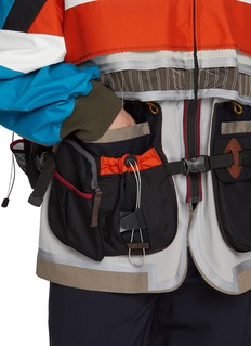 Engineered with Kolor’s signature hybridity, this jacket layers bold colour-blocking with utilitarian pocketing and exposed seam play. The cropped proportions and technical straps lend a directional edge—ideal for elevating tailored trousers or grounding relaxed silhouettes. Crafted in a wool blend.