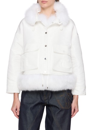 A statement in versatility, this oversized jacket is elevated by a detachable fox trim that transforms its mood at will. The relaxed silhouette balances utilitarian pockets with soft volume, pairing effortlessly with denim or layered knits for modern, transitional styling.