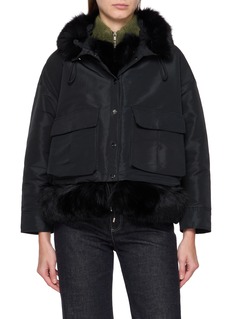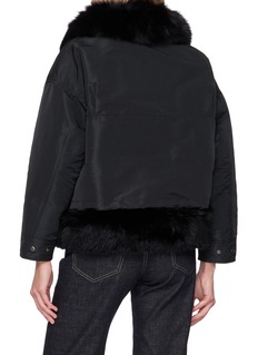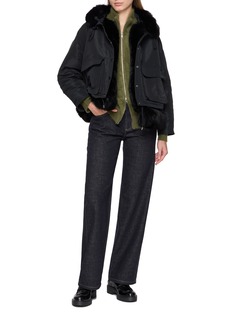 Rendered in deep black, this detachable fox trim jacket by KRUF embodies a sharp, urban sensibility. The oversized, cropped silhouette delivers modern confidence, while the removable fur detail introduces depth and drama—allowing the piece to shift seamlessly from refined everyday outerwear to a bold cold-weather statement.
