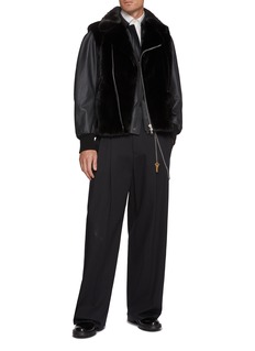 Bold yet meticulously refined, this biker vest reimagines classic moto attitude through the opulence of mink fur and supple lambskin. KRUF sculpts the silhouette with an asymmetric zip and a generous collar, creating movement and dimension. A standout layer that turns winter styling into a statement of texture, structure, and confidence.