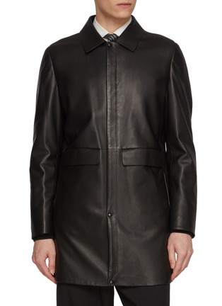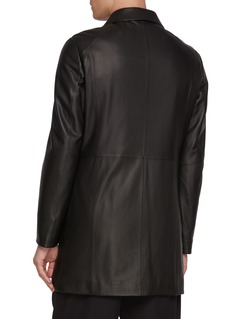 A refined expression of winter tailoring, this long coat by KRUF pairs smooth lamb leather with a sumptuous mink-lined interior. The clean shirt collar and streamlined zip-up front lend a polished sensibility, making it a confident choice for formal settings or elevated everyday wear.