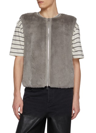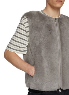 Versatility meets indulgence in this reversible design by KRUF. One side reveals sumptuously soft mink with a minimalist round neckline; flip to the quilted nylon reverse for a lighter, technical expression. A refined layering piece that transitions seamlessly from elevated casual to travel-ready polish.