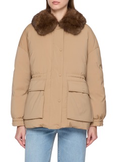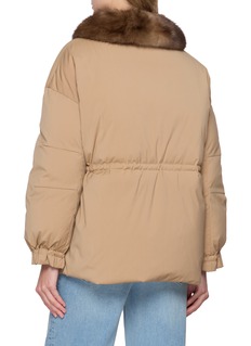 Designed for warmth without excess, this down jacket pairs a softly structured silhouette with the tactile richness of a sable fur collar. The cinched waist subtly shapes the form, balancing practical insulation with refined, everyday elegance for cold-weather dressing.