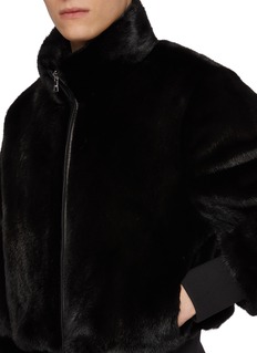 A study in quiet opulence, this bomber jacket is crafted from velvety mink fur, embodying KRUF’s duality of indulgence and function. Its sleek silhouette and high collar make it a sophisticated layer for winter tailoring or elevated casualwear.