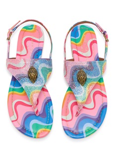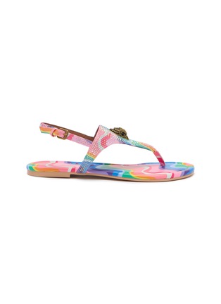 The Kensington slingback sandals are crafted from a captivating rainbow-striped fabric. Adorned with embellishments and black beaded eyes on Kurt Geiger's signature eagle head for a classic touch.
