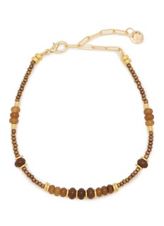 This La Coque Française necklace is an exquisite piece of jewelry that combines classic elegance with a touch of modern flair. It features an array of carefully selected brown and golden beads, strung together to create a harmonious and sophisticated look. The golden accents interspersed among the rich brown beads add a luxurious sparkle, making this necklace a versatile and timeless accessory.