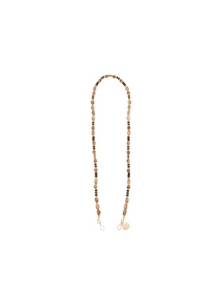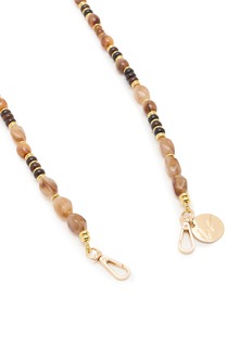 This LA COQUE FRANCAISE phone strap exudes a timeless elegance with its sequence of polished earth-toned beads, complemented by sophisticated black and golden accents. The varied bead sizes and hues create a natural, flowing aesthetic, making it an ideal accessory for both casual and formal attire. Featuring a signature charm and a secure clasp, this necklace is crafted for durability and style.
