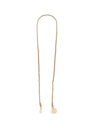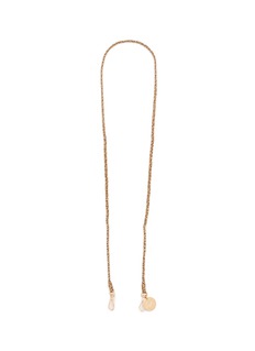 Introducing La Coque Francaise's gracefully braided phone strap, a testament to refined elegance. This sophisticated accessory is intricately woven with golden and cream threads, creating a luxurious texture that is both visually appealing and tactile. The delicate braiding is complemented by sleek, gold-tone hardware and a signature charm that adds a personalized touch.