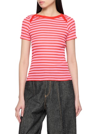 A joyful staple infused with LA FETICHE’s playful colour language, this striped top is knitted in crisp fil d’Ecosse cotton for a smooth, breathable feel. The close ribbed texture and contrast trims sharpen the silhouette—perfect tucked into denim or paired with tailoring for an upbeat everyday look.