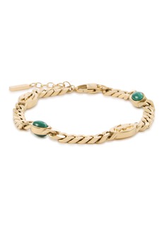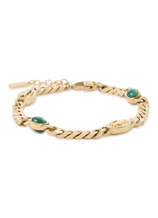 This elegant Lacoste necklace, featuring a classic gold chain interspersed with vibrant green gems, exudes sophistication. The subtle incorporation of the iconic Lacoste logo adds a touch of brand prestige, making it a perfect accessory for both formal and casual settings.