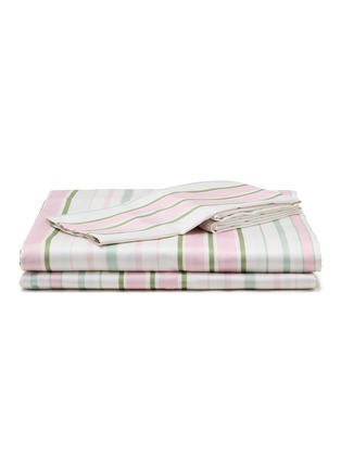 LAGOM - Cotton King Size Bed Set of 4 — Light Pink/Light Green Stripes