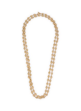 This vintage Monet long necklace embodies 1990s understated glamour, strung with textured gold-tone balls that catch light with subtle warmth along its elongated chain. The sleek, repetitive design balances retro ease with polished charm—its flowing silhouette drapes effortlessly, making it a versatile staple for adding quiet 90s sophistication to any outfit.
