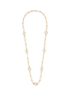 This 1980s necklace marries bold structure with soft charm, featuring sleek gold-tone paperclip links interspersed with creamy faux pearls. The mix of geometric edge and gentle luster captures the era’s love of contrasting textures—its elongated silhouette drapes effortlessly, adding 80s retro cool to everything from tees to tailored blazers.