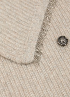 This ribbed neck warmer blends the sumptuous softness of cashmere with the lustrous touch of silk, detailed with delicate metallic chain fringes that shimmer subtly with movement. Perfect for layering under coats or knits, it adds a quiet opulence to cool-weather dressing.