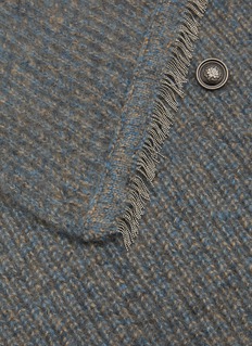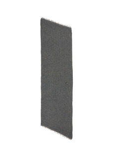 This knitted neck warmer in cashmere and silk reveals a subtle two-tone depth through its ribbed cardigan stitch. Embellished with fine metallic chain fringes and an antique-style button, it fuses artisanal tactility with a touch of modern edge — ideal for refined winter styling.