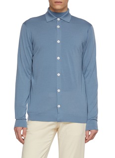 Blurring the line between shirting and knitwear, this refined cardigan from Lardini is crafted from lightweight virgin wool for a fluid drape and polished texture. Defined by its shirt-style collar and tonal button placket, it offers a minimalist approach to layering—perfect beneath tailoring or over a crisp tee.