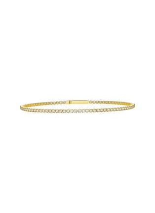 A continuous stream of round-cut diamonds traces the wrist with effortless grace. Set in warm 18K rose gold, this refined tennis bracelet balances softness and brilliance, making it a timeless accent for both everyday elegance and formal occasions.