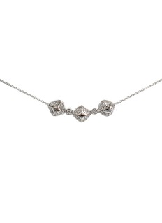 This diamond pendant beautifully showcases the jeweller's exceptional craftsmanship, as it is meticulously designed to move and transform. Featuring geometric shapes, the pendant offers the flexibility to be styled in a linear setting or clustered together as a pendant, offering the wearer options for styling.