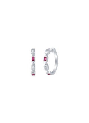 LC COLLECTION JEWELLERY - 18K White Gold Ruby Diamond Hoop Earrings