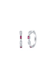LC COLLECTION JEWELLERY 18K White Gold Ruby Diamond Hoop Earrings
