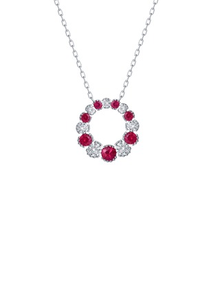 Vibrant and poised, this 18K white gold necklace forms a radiant circle of alternating rubies and diamonds. The rhythmic interplay of colour and light brings refined drama, perfect for elevating minimalist daywear or accenting evening silhouettes.