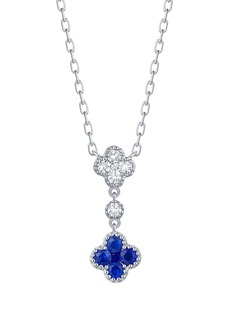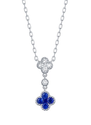 Gracefully suspended, this 18K white gold necklace features a delicate diamond-set clover leading to a sapphire drop. Balancing softness and sparkle, it adds a refined touch to daywear and lends quiet romance to evening silhouettes.