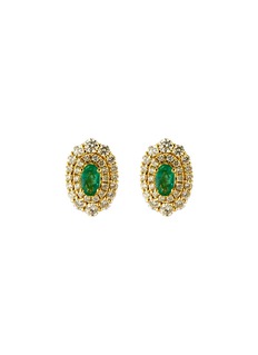 LC COLLECTION JEWELLERY Double Halo 18K Gold Diamond Emerald Stud Earrings