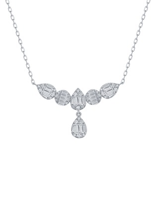 LC COLLECTION JEWELLERY - Geometric Cascade 18K White Gold Diamond Necklace — Size 18"