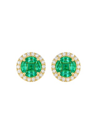 LC COLLECTION JEWELLERY - Halo 18K Gold Emerald Diamond Stud Earrings