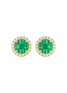 LC COLLECTION JEWELLERY Halo 18K Gold Emerald Diamond Stud Earrings