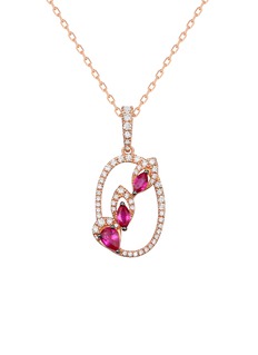 LC COLLECTION JEWELLERY Oval Motif 18K Rose Gold Ruby Diamond Pendant Necklace — Size 18"