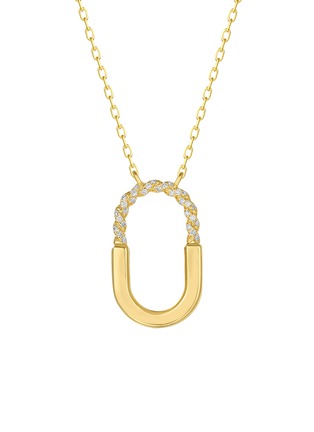 A modern curve rendered in 18K yellow gold, this necklace features a sculptural arc pendant traced with pavé-set diamonds along its crown. Minimal yet distinctive, it adds a polished, contemporary accent to everyday looks and refined evening layering.