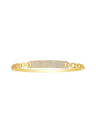 A sculptural interplay of structure and shimmer, this bangle centres on a pavé-set diamond bar framed by polished chain links. Crafted in luminous 18K yellow gold, it brings a confident edge to day dressing and refined brilliance after dark.