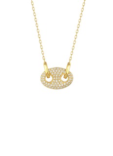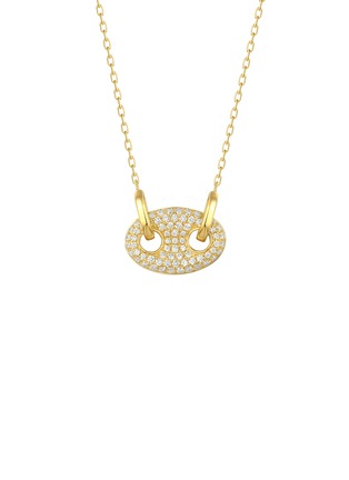 Refined yet contemporary, this necklace features a softly contoured oval link pavé-set with brilliant diamonds. Crafted in polished 18K yellow gold, it adds sculptural sparkle to everyday looks while layering effortlessly with fine chains for evening elegance.