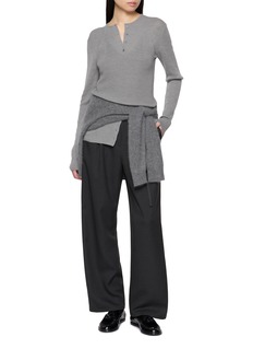 Discover the refined elegance of these LE17SEPTEMBRE trousers, meticulously tailored for a perfect fit. Featuring a classic charcoal hue, these trousers are crafted from a premium wool blend, ensuring both comfort and durability. The design includes a high waist, sleek belt loops with a button detail, and a subtle wide-legged silhouette that enhances the sophisticated appeal.