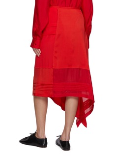 An ode to 1920s elegance, this LEMAIRE skirt is composed of Crêpe de Chine, parachute silk chiffon, and silk twill panels. Its asymmetric silhouette and intricate pleats move fluidly with the body, creating a rhythmic play of texture and sheen. A modern interpretation of timeless grace.