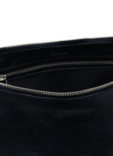 This LEMAIRE bag is a paragon of minimalistic charm and functionality. The sleek, supple leather body in a deep black hue offers a timeless appeal, ensuring this piece can seamlessly transition from day to evening wear. It features a comfortably long strap for shoulder wear and subtle knot details that add a touch of understated elegance. The spacious interior, secured with a zip closure, is perfect for accommodating daily essentials with ease.