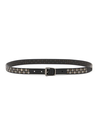 Elevate your wardrobe with this Lemaire studded belt, where sleek black leather meets subtle metallic studs for a touch of rebellious sophistication. Perfect for Hong Kong’s style-conscious, its versatile design effortlessly transitions from day to night, adding an unexpected twist to both casual and polished looks. A statement piece for the modern minimalist.